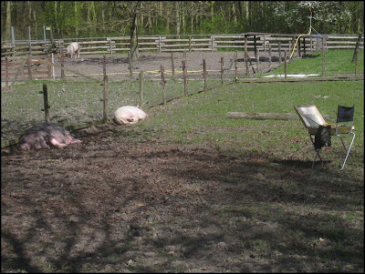 Hieronder het schilderijtje dat ik gisteren even in een halfuurtje heb gemaakt, om eens te zien of de drie kleuren rood, blauw en geel